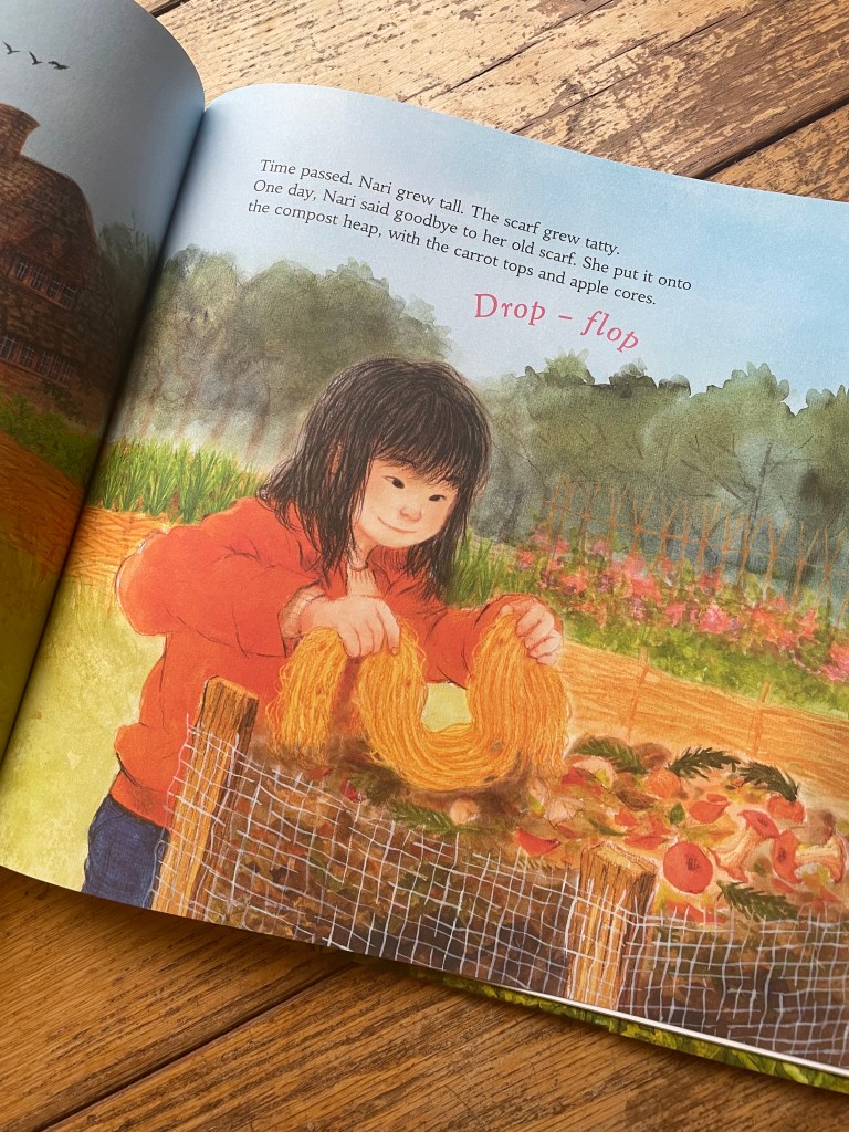 - Spin a Scarf of Sunshine by Dawn Casey; gorgeous illustrations, featuring a sweet family who sheer their own wool, spin and dye the yarn, and then knit a scar. When it’s been loved and used, it ends up in the compost pile in the garden. If you’re passionate about natural fibres, this is a great introduction to explain the cycle of garments to your children and the impact they leave (or don’t, in this case).