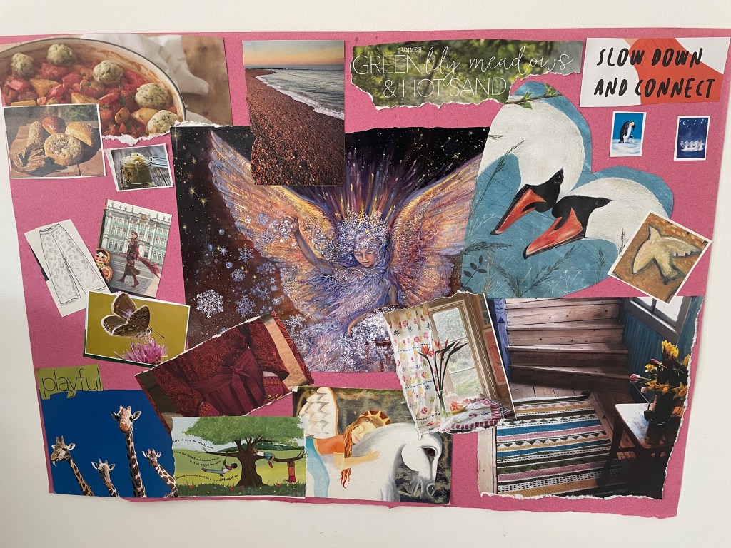 It’s a great activity to do with children too, give them no guidance other than ‘cut out and stick on here what you enjoy and want more of this year’…you might learn something new about them.